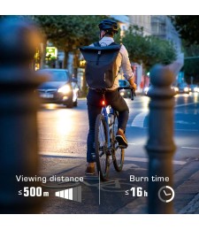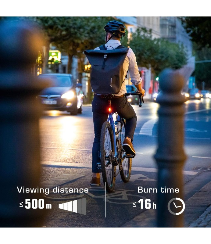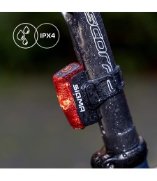 La luz trasera de SIGMA asegura una visibilidad máxima gracias a sus 25 lúmenes y una visibilidad desde 1500 metros.